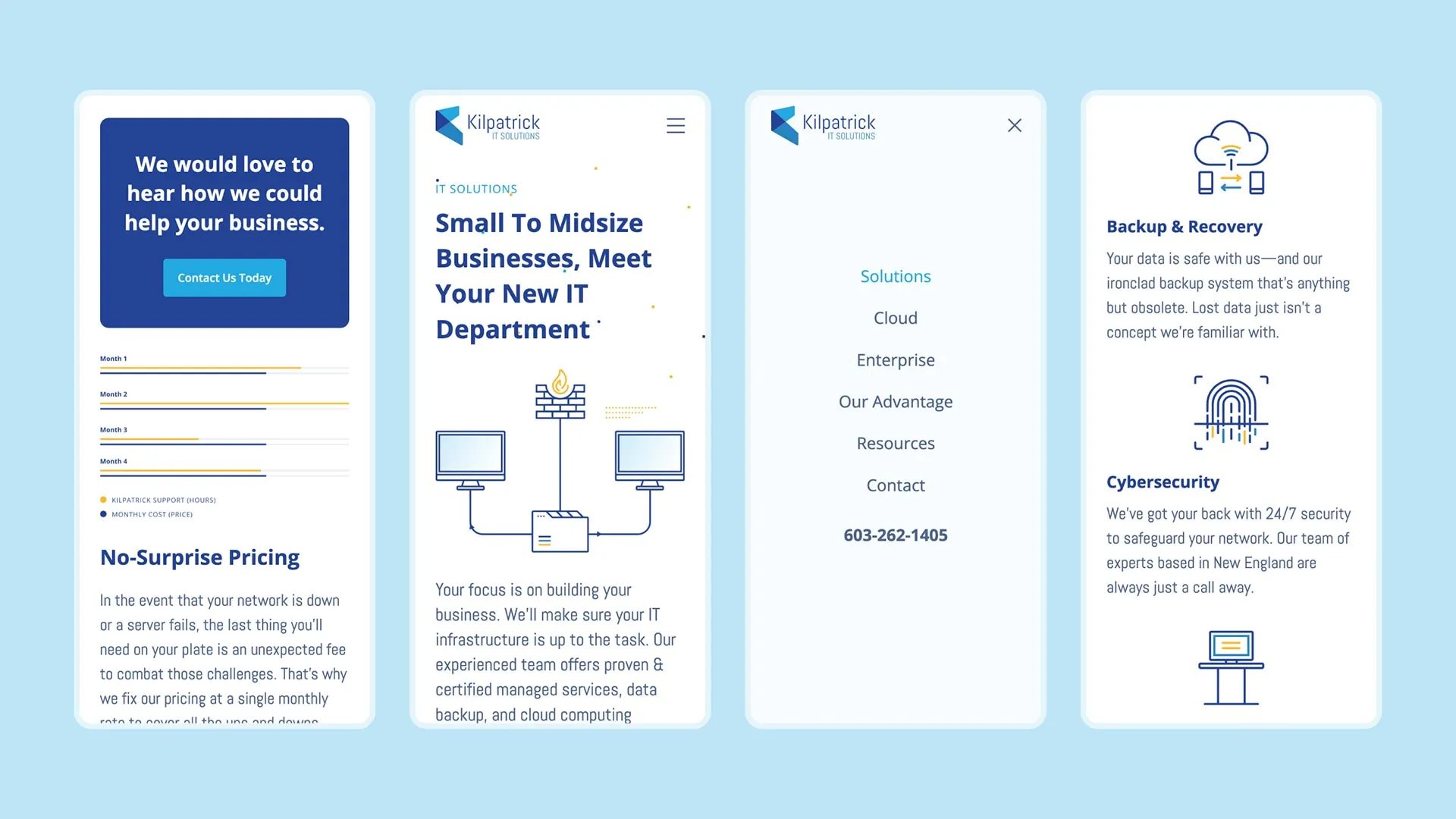 Kilpatrick IT (KIT) sought out an innovative new look that laddered up to the high-quality service they’re known for today. Together, we explored the attributes of their brand and business that make them trusted experts among New England’s corporate landscape and beyond, using their strengths to craft an all-new identity and build a custom website that’s both engaging and authentic.